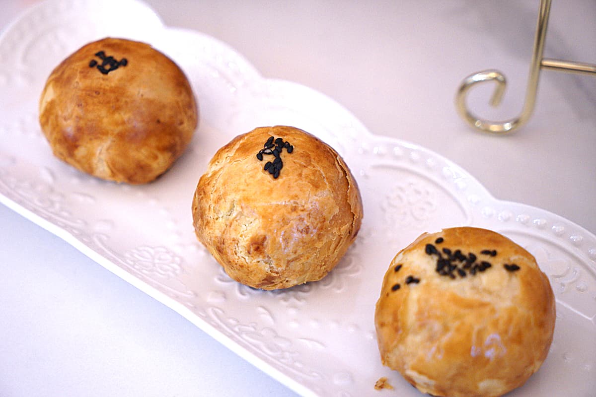 卡滋蛋黃酥!每年中秋人氣王,七月開始就已經不少公司買來送禮了,看看這一層一層酥皮的模樣,真的會讓人忍不住一口接著一口啊!裡面的紅豆餡是走低糖減量50%的概念,吃起來的甜膩感沒那麼重,對於長輩們的負擔也可以減輕不少。