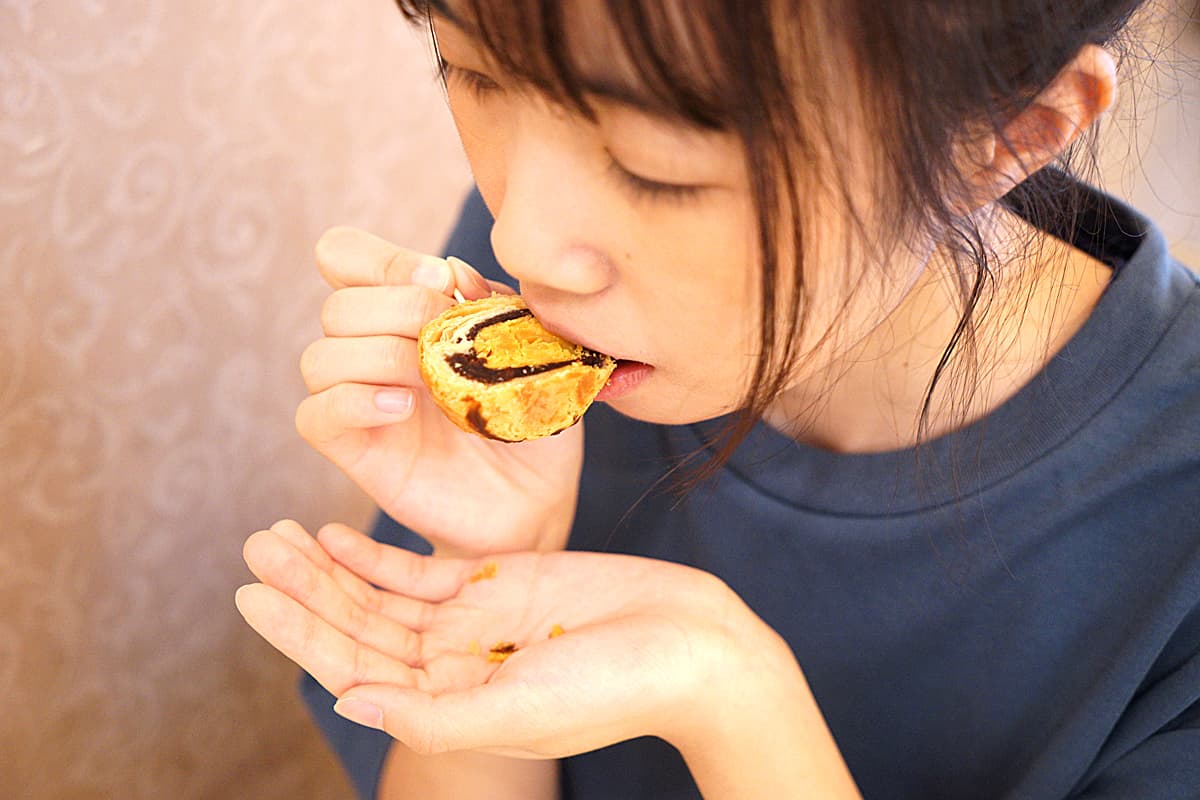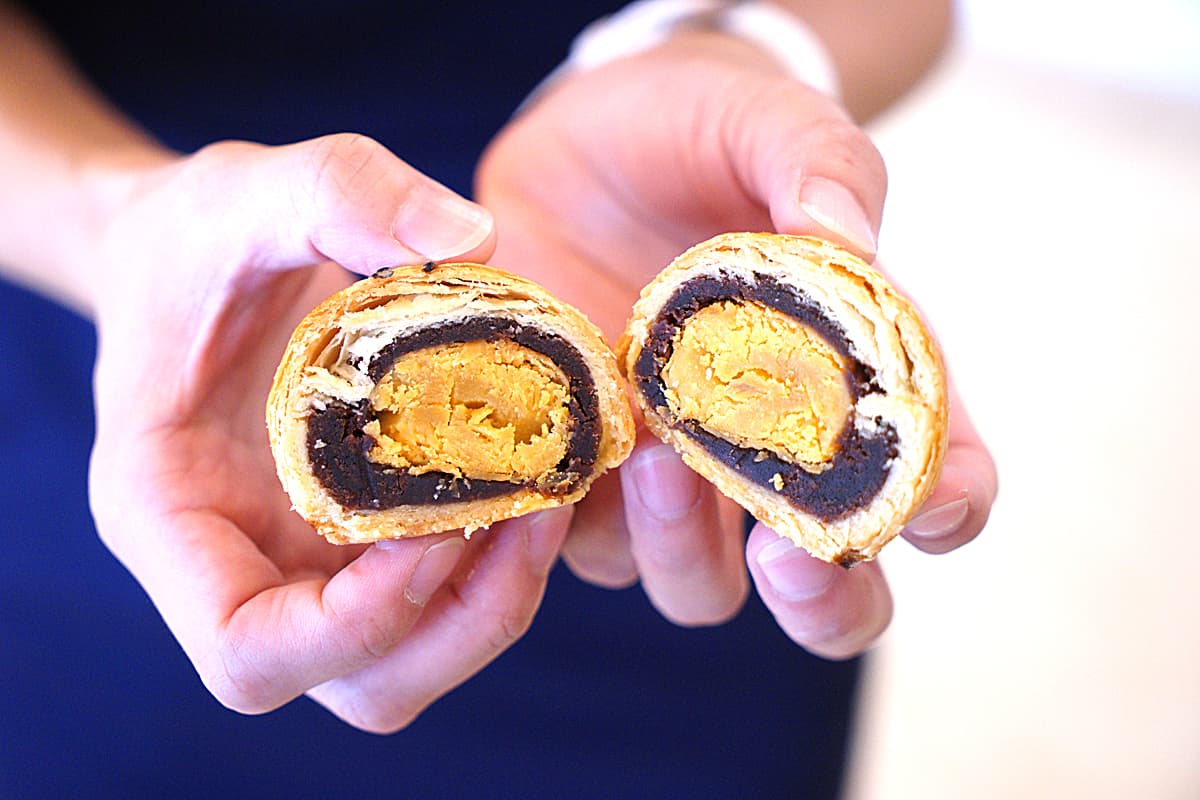 強烈推薦回家可以把蛋黃酥分兩種吃法,正常就是回烤,這時候香氣會被逼出來,表皮也比門市現場吃到的更酥口,口感檔次整個昇華!如果喜歡吃扎實的朋友,冰心的皮雖然不會像是回烤那樣酥,可是冰過後綿密的內餡交纏在一起,你可以慢慢感受到紅豆的香甜在嘴中散開,緊接而來的又是蛋黃爆出來的甜香,個人好喜歡這樣的層次啊!