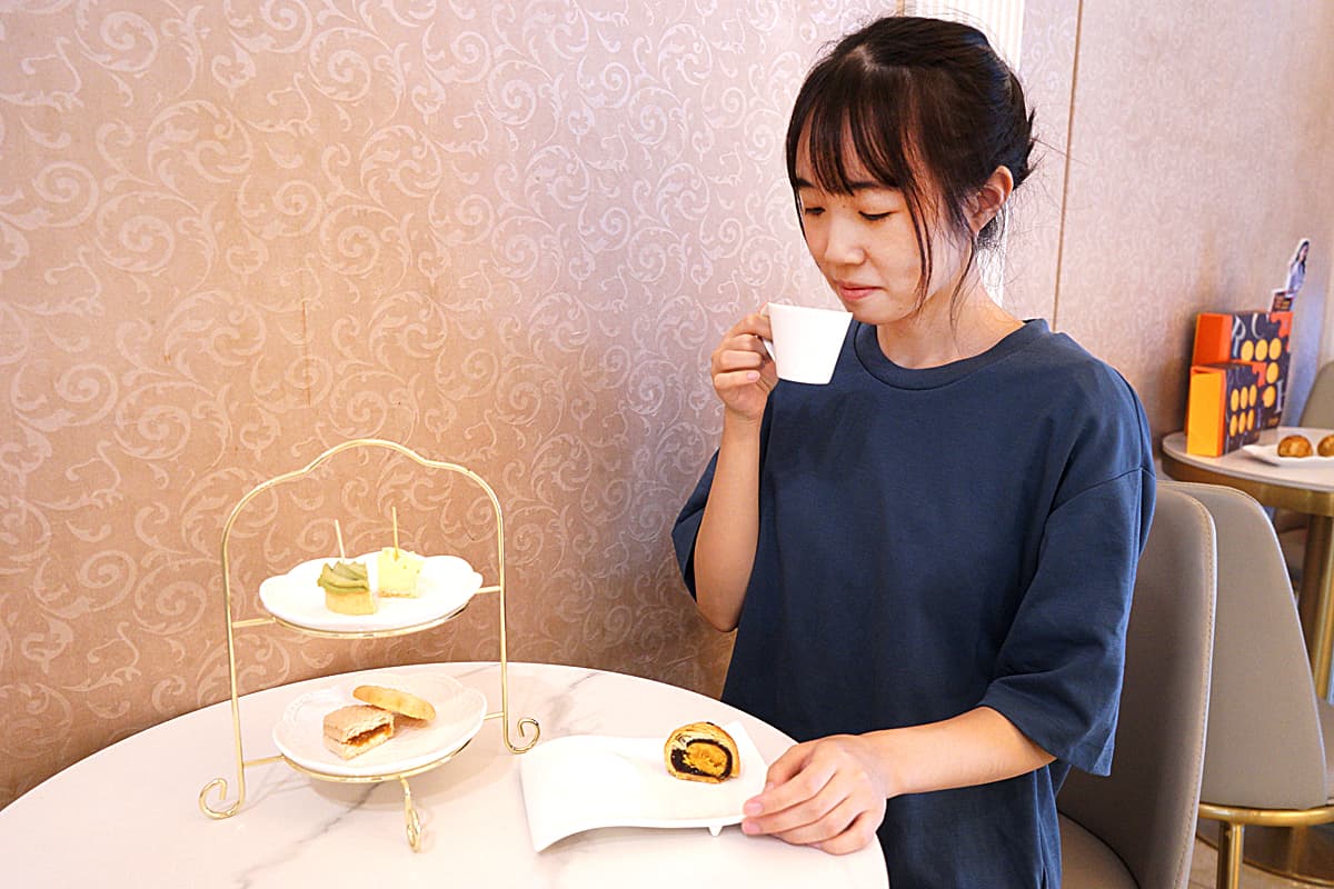 但更重要是!現場本身有提供免費試吃,一般會有人氣鳳梨酥跟蛋黃酥以及一杯茶飲,吃喜歡再買也沒關係,如果你又想參加+1元多一顆活動的朋友,等於是加倍幸福享受啊!多的一顆直接帶回家吃。