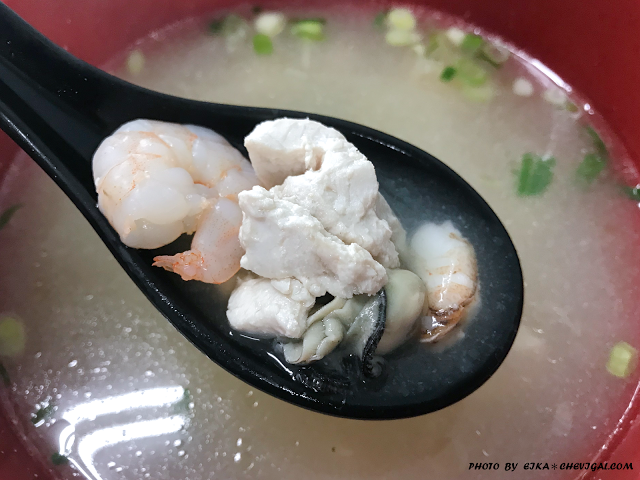 最後登場的就是昆布風味的虱目魚肉湯,湯裡面的料不僅有虱目魚肉還有蝦仁、蟹肉與蚵仔,老闆的魚肉給得更是海派與豪邁啊!另外魚肉湯的魚肉都是老闆經過除刺處理的,害怕魚刺而不敢吃虱目魚的捧油也可以大口大口享受喔!