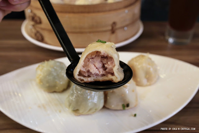 一口咬下會立馬流出鮮美的肉汁,蒸的時間拿捏的剛好,皮的口感很有嚼勁,肉的部份應該是選擇油脂較多的部位,吃起來粉嫩粉嫩的感覺,不過我們比較喜歡瘦肉多一些的口感。