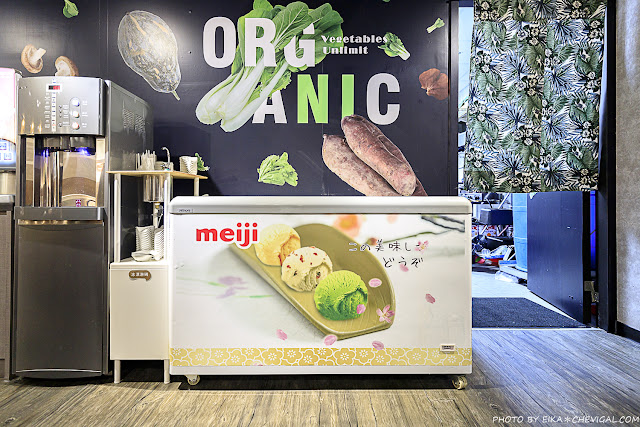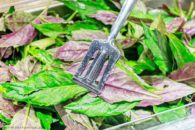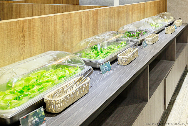 每天提供續加的品項不太一樣,像這天檯面上就有大陸妹、青江菜、荷葉白菜與高麗菜,甚至連比較冷門的紅鳳菜都能吃得到!重點是有機葉菜在市面上的售價真的不便宜,能夠這麼霸氣地提供大家吃到飽,目前全台中恐怕也只有良食煮意做得到了XD