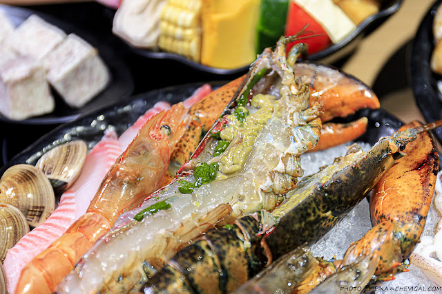 來到良意煮意不但可以享有新鮮認證葉菜吃到飽,肉品與海鮮也完全不隨便;像龍蝦套餐就包含了活體波士頓龍蝦、生食級天使紅蝦、大白蝦、透抽、鯛魚片與蛤蜊,看起來特別新鮮澎派,兩人分享也沒問題!