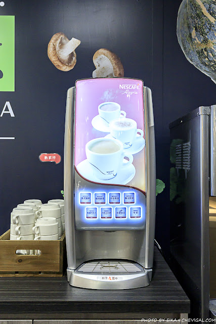如果想喝熱飲,這裡也有貼心地提供咖啡機可以選擇,想喝各式咖啡、巧克力、奶茶、牛奶都沒問題;不喝飲料的話,旁邊還有飲水機供應開水。