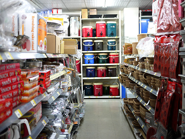 裡面賣的種類真的超多的,保鮮膜、水壺、裝麵包的木盆子等等都有。