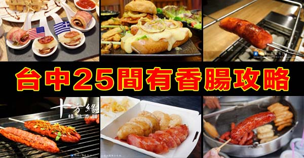 台中25間香腸攻略│吃熱狗米腸不如來根大香腸吧,是由多位台中美食部落客共同製作,一根小小的香腸,在料理上可以有什麼樣的變化呢?炸的?烤的?煎的?或是加上邪惡起司的呢?以下就讓我們來瞧瞧本次精彩內容(點選紅色標題可以觀看全文):