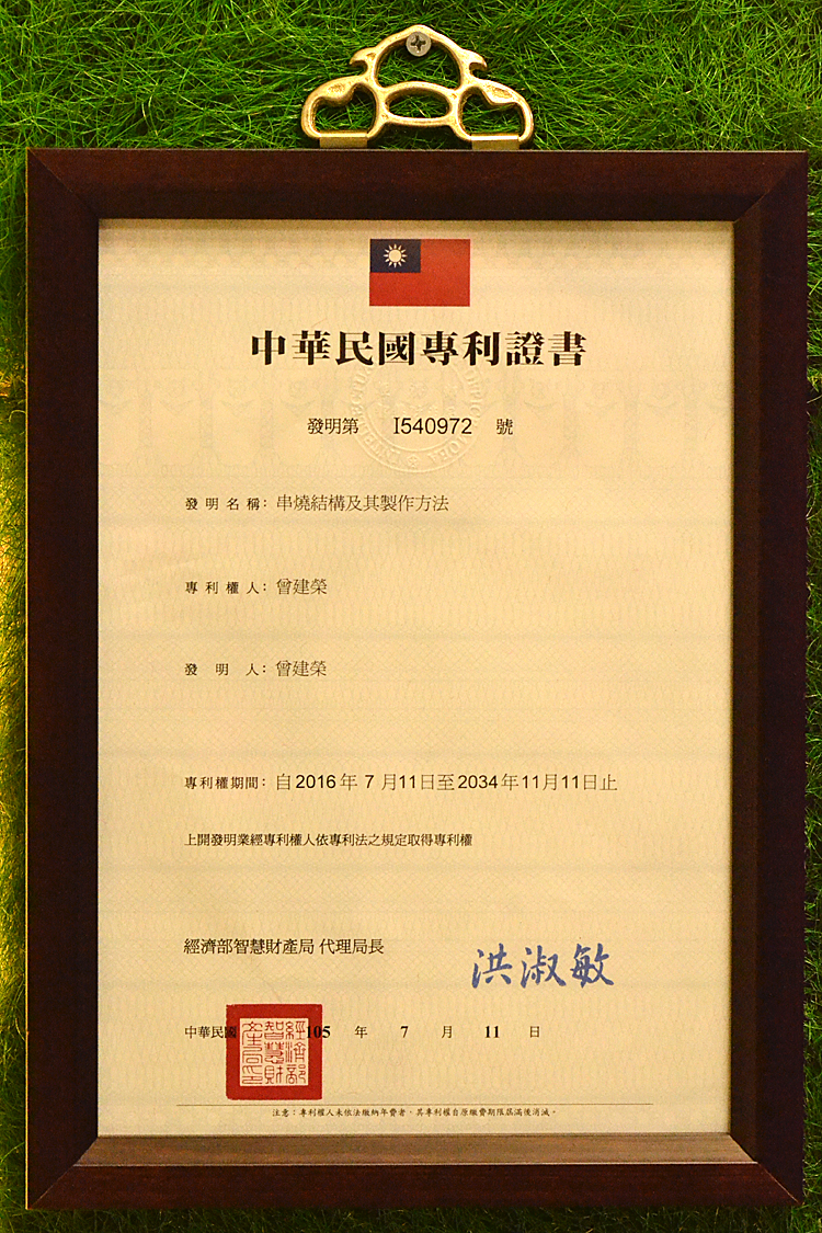 目前除了是台中排隊店外,今年也拿到了燒烤結構及其製作方法專利證書,成為台灣首間有專利證書的燒烤店!
