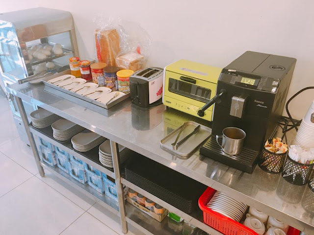 隔天一早,因為要趕去搭車,所以很早就去吃早餐,說實話好像根本也睡不到什麼,嚇都嚇死了,早餐的地方是自助式的,空間如上。