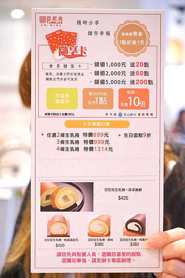 還記得剛剛提到的會員隨享卡嗎?只要是會員,就會有卡友專屬優惠,買生乳捲會更便宜,儲值或是用卡消費也會送點數。