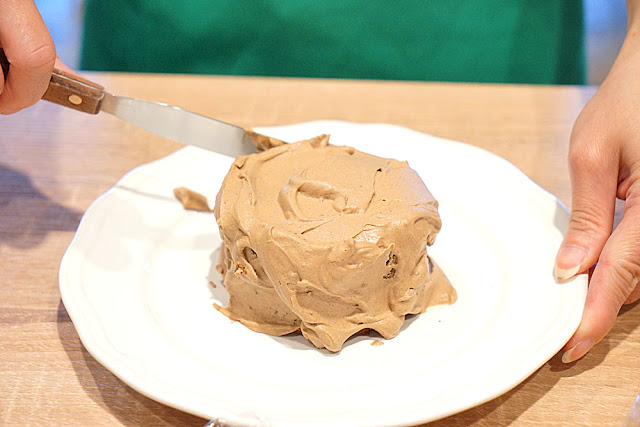 這時候才知道,原來我們一般吃到的蛋糕都是這樣來的!要把它抹到很平也真的不太容易說,需要一點小技巧。