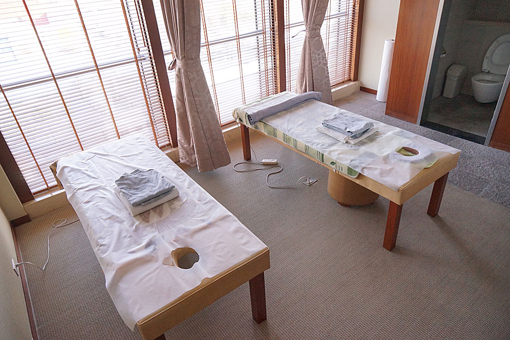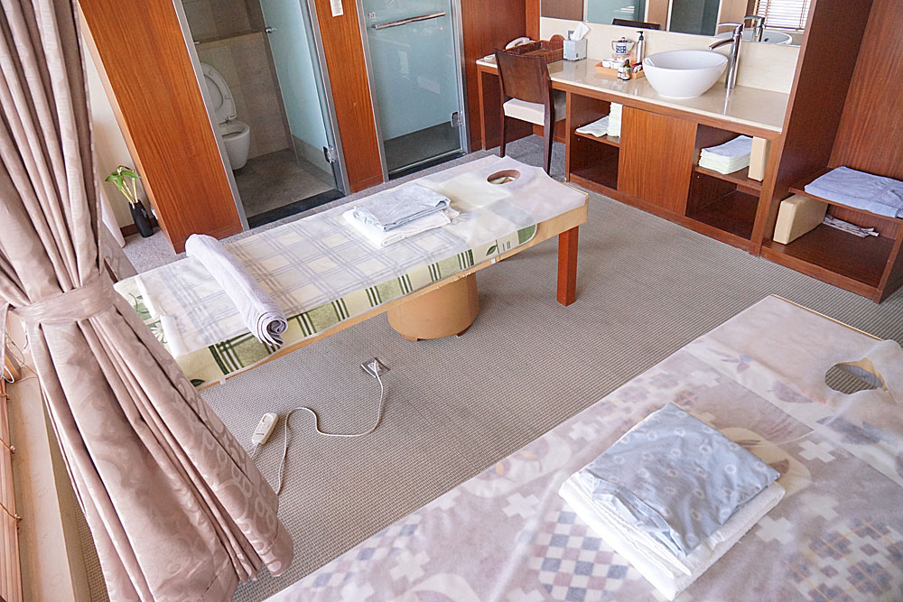 採光蠻好的,也有窗簾可以調整來保有隱私,每張床之間也可以在區隔起來的,記得按摩前要先換好飯店準備的衣服唷。