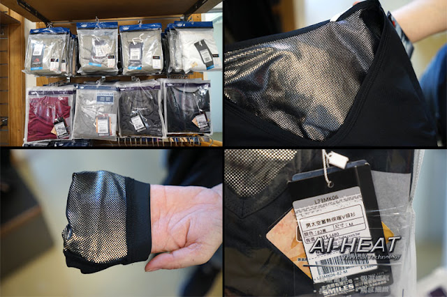 其中我覺得必逛的重點是這個AI-HEAT太空蓄熱保暖衛生衣,跟一般發熱衣不同的特點是利用鋁膜層鎖住熱能循環來做到一種保暖蓄熱的功能,簡單直白地說,就是如同保溫瓶一樣把熱留下來,原本以為觸感會很差,請店員開一個讓我摸摸看,結果摸起來很柔軟,十分意外。