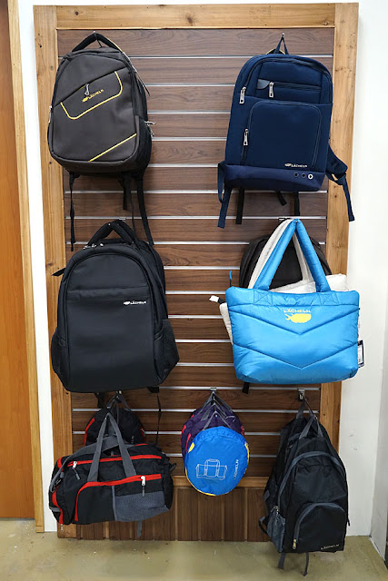 廠拍會場中還有賣一些電腦包、登山包的款式,其中的登山包我覺得蠻特別的,我個人第一次看到,下圖中間圓圓的就是登山包,不要看他小小的,打開後就會變成左下的模樣。