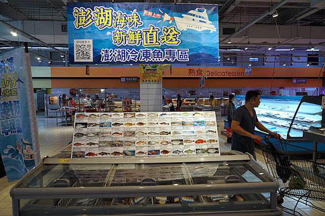 海鮮區部分也有澎湖直送的魚與冷凍魚專區,沒有急速冷凍的魚會放在另外一區,每日魚種皆不固定,會看漁民的捕獲狀況,上面還有針對每種魚種有簡單介紹。