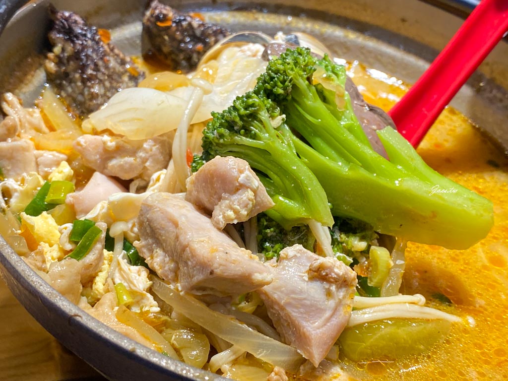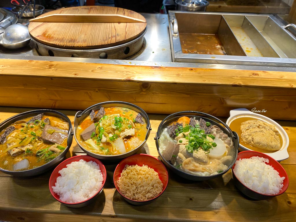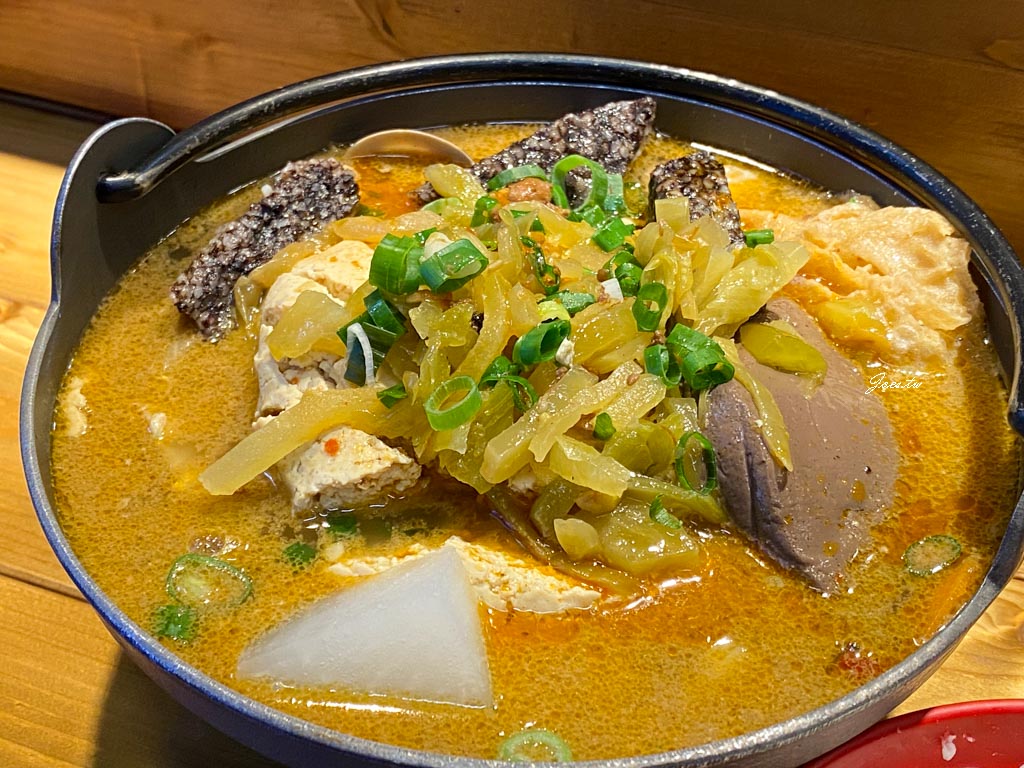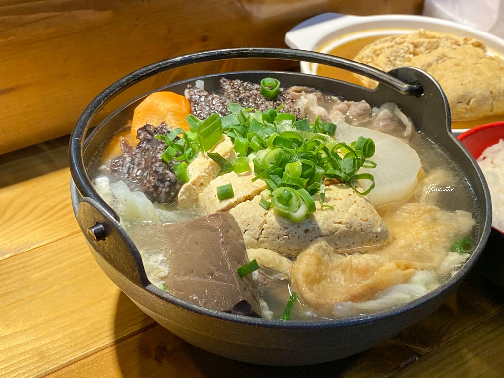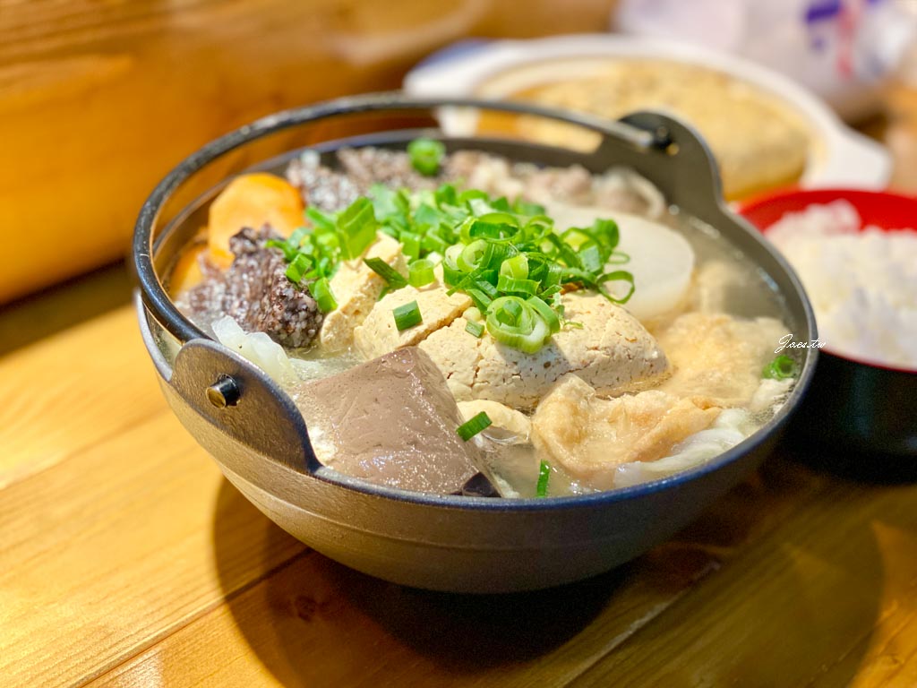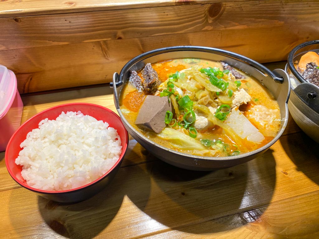 一鍋份量不小的鍋物配上一碗白飯,吃起來相當有滿足感。配料種類多、份量給得實在,店家也會細心介紹餐點,下午五點後一直開到晚上12點很適合當晚餐或宵夜選擇,湯可以續,不想吃的配料也能更換成蔬菜。