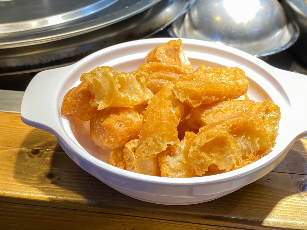 來了幾回的我們,此次在與店家聊天過程中他拿了油條說要請我們吃看看,說是跟麻辣湯頭有搭,我試了一下,單吃時入口很酥脆,浸到湯裡略等一下便吸飽湯頭,有喜歡油條的很可以點。